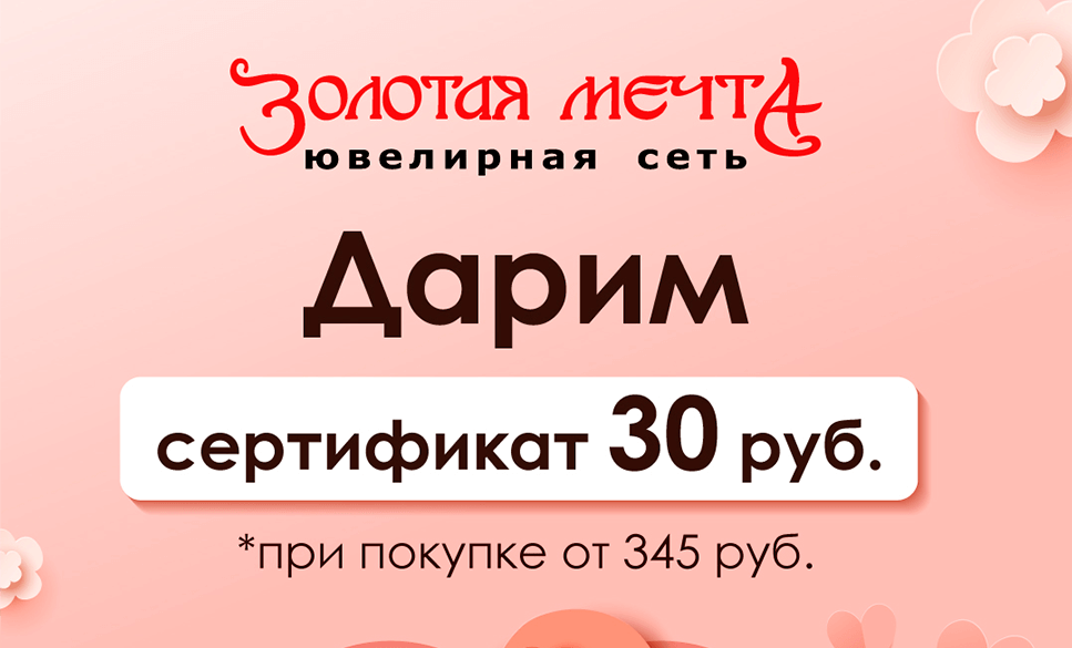 В честь праздника «Дня матери» дарим сертификат на 30 руб. при покупке от 345 руб.
