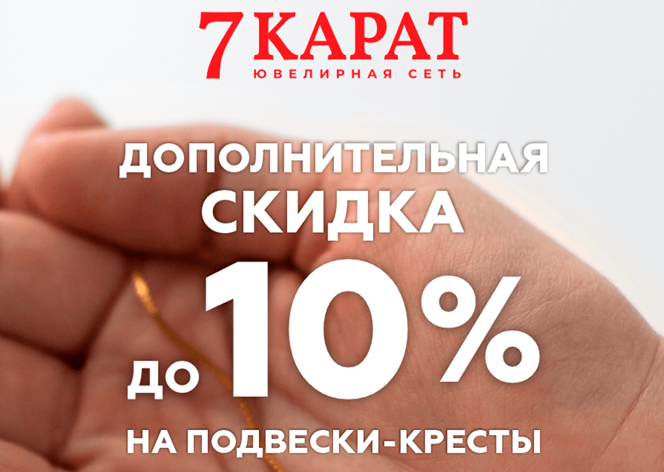 Ювелирная сеть 7 КАРАТ запустила специальное предложение на подвески-крестики. Теперь приобрести крестик из золота или серебра можно с дополнительной скидкой до 10% и это отличная возможность порадовать своих крестников и близких по-настоящему душевным подарком.